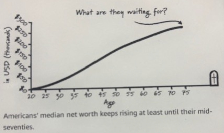 In other words, most people are saving and hoarding for a time when they will be least able to do the cool stuff.